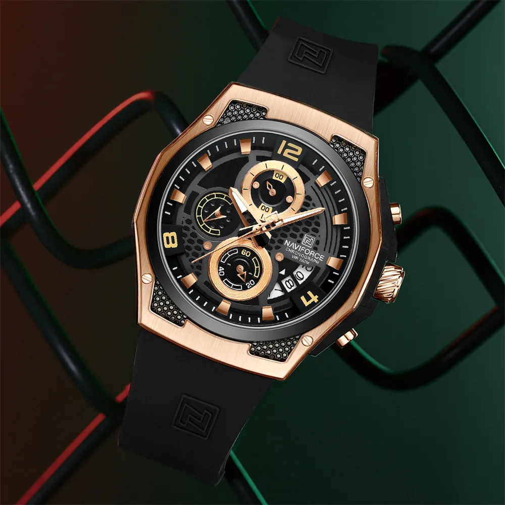 CURREN 8442 Multi-function Chronograph Men Watch Silicone Band Sports Quartz Watches-Rose Gold & Black