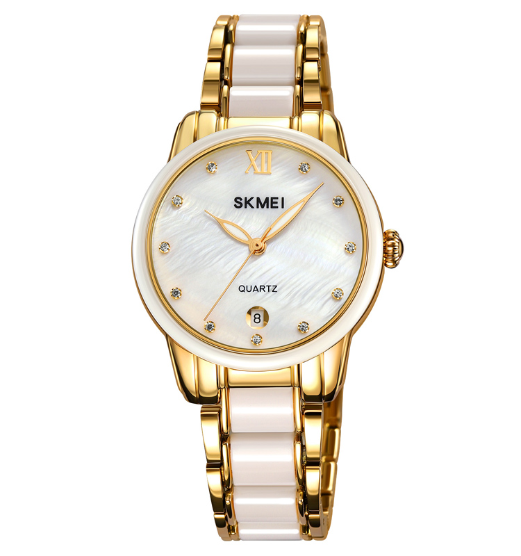 SKMEI 2175 WOMEN CERAMIC ALLOY LUXURY FASHION WATERPROOF WATCH