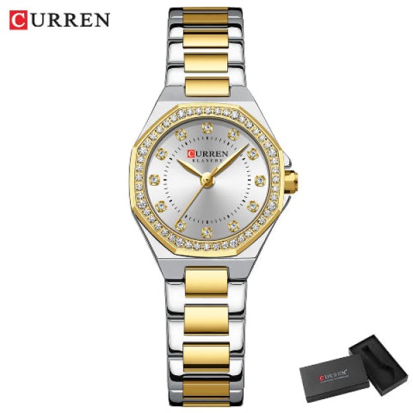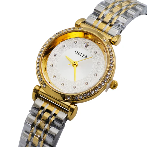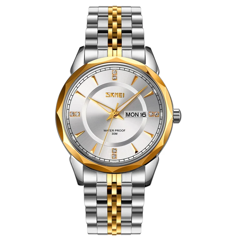 SKMEI 2175 WOMEN GOLDEN SILVER CERAMIC ALLOY LUXURY FASHION WATERPROOF WATCH