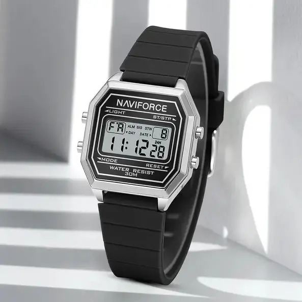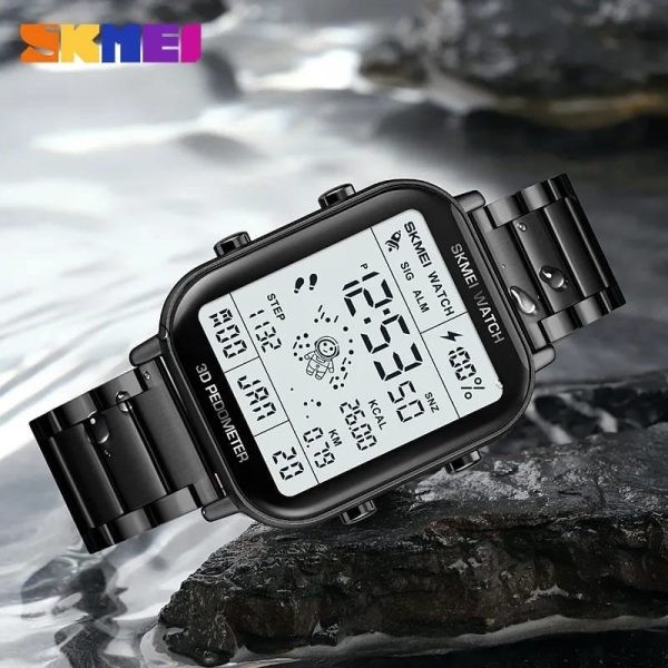 Skmei 1888 Digital Wrist Watch- Black Chain and Silver Dial