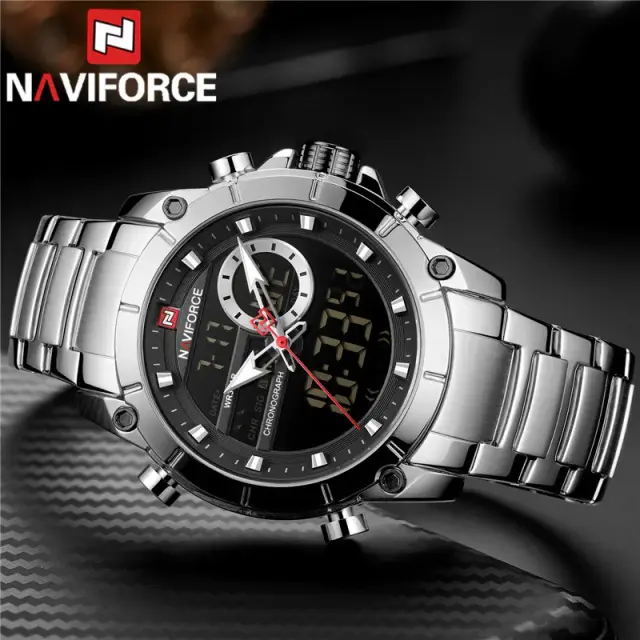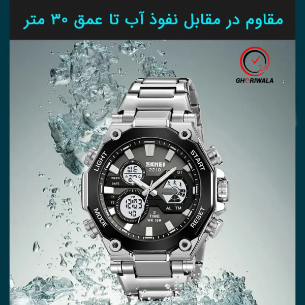 SKMEI 2210 Luxury Dual Time Display Digital Mens Watch – Sliver