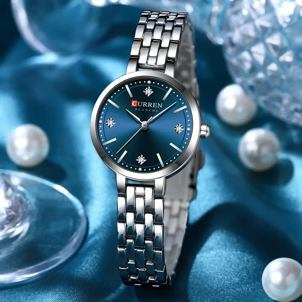Curren 8439 Watch For Women – Sliver Chain and Blue Dial