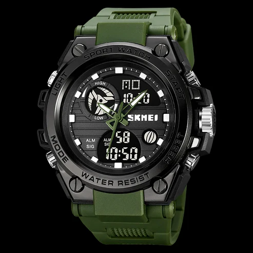 SKMEI 2031Multifunction Dual Time Chrono Date Quartz Watch-Green