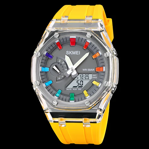 SKMEI 2100 New Fashion Digital Analog Quartz Watch-Yellow