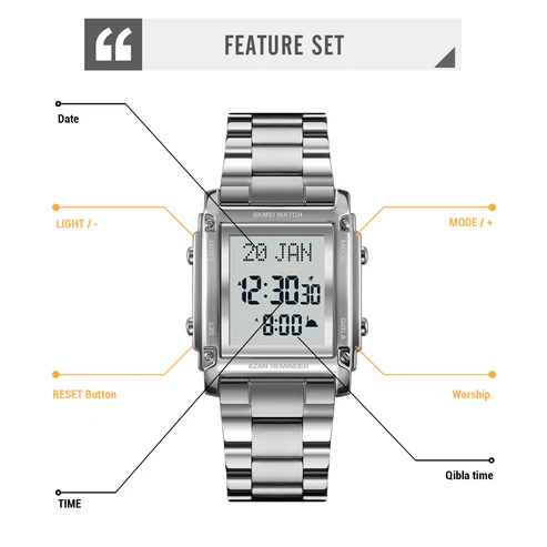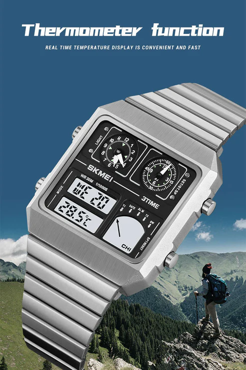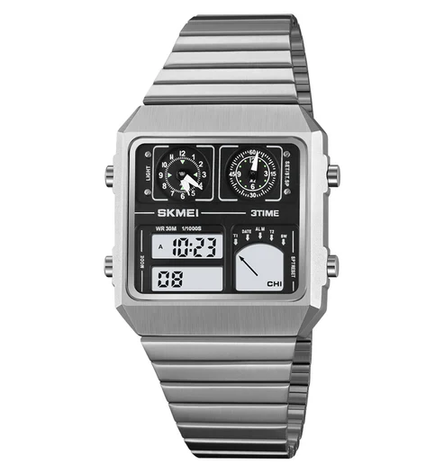 SKMEI 1868 Multiple Time Digital Watch For Watch For Men-Silver