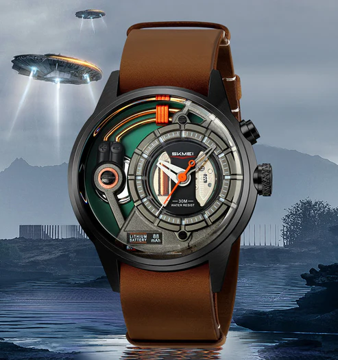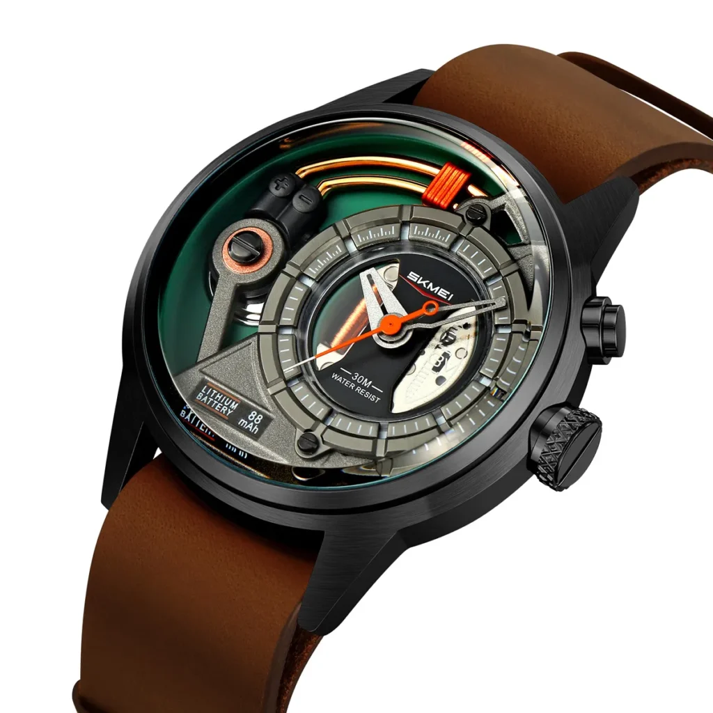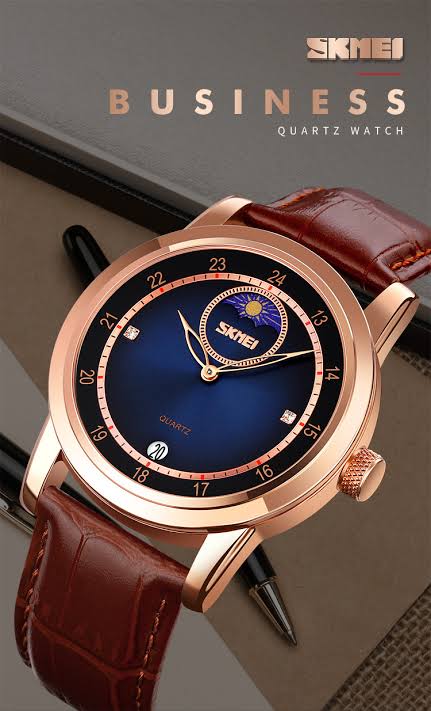 SKMEI 9300 Watch For Leather Men-Blue Moon Choclete Belt