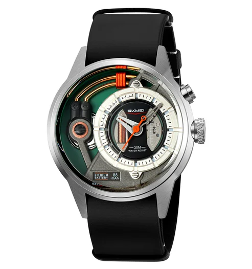 Skmei 9268 Watch For Mens- Circle Silver Golden and Black