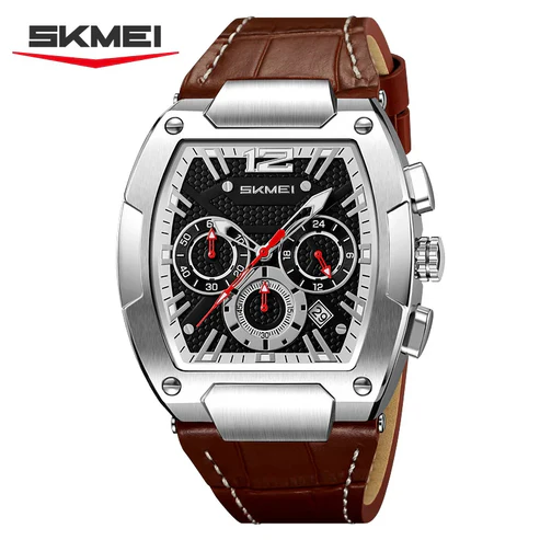 SKMEI 2339 Chronograph Watch For Men-Silver Black Leather