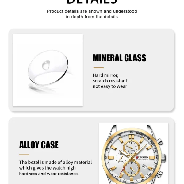 CURREN 8479 Orginal Watch For Men-Golden Silver and White
