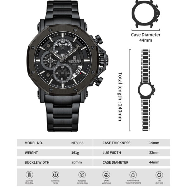 Naviforce nf 9218-Silver Black Watch Price In Bangladesh