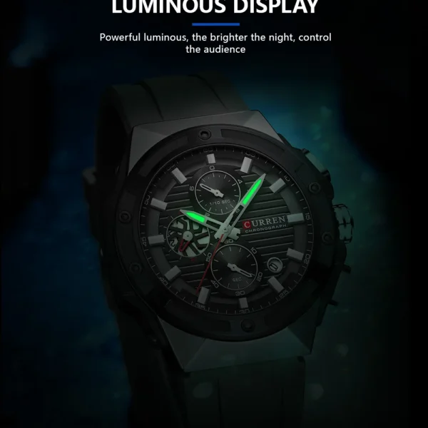 CURREN 8442 Multi-function Chronograph Men Watch Silicone Band Sports Quartz Watches- White