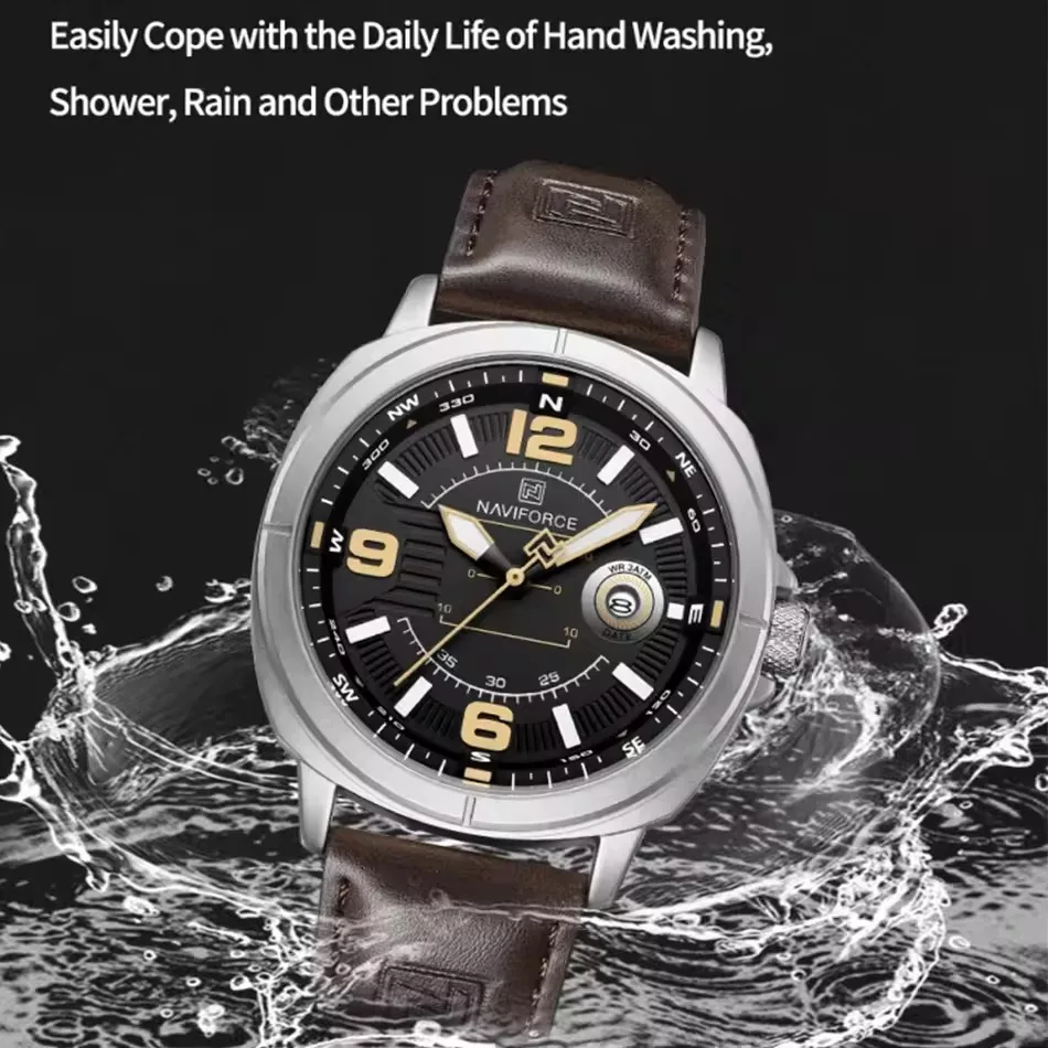 Naviforce 9233 Leather Wrist Watch For Men-Brown Black