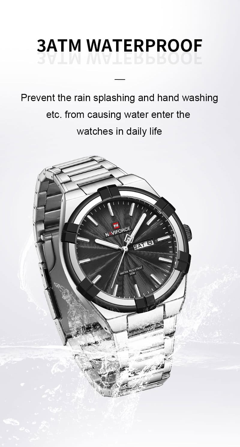 Feature: 30M Water Resistant, Luminous Hand; Date& Day Display; Stainless steel material; Brand new stylish design.