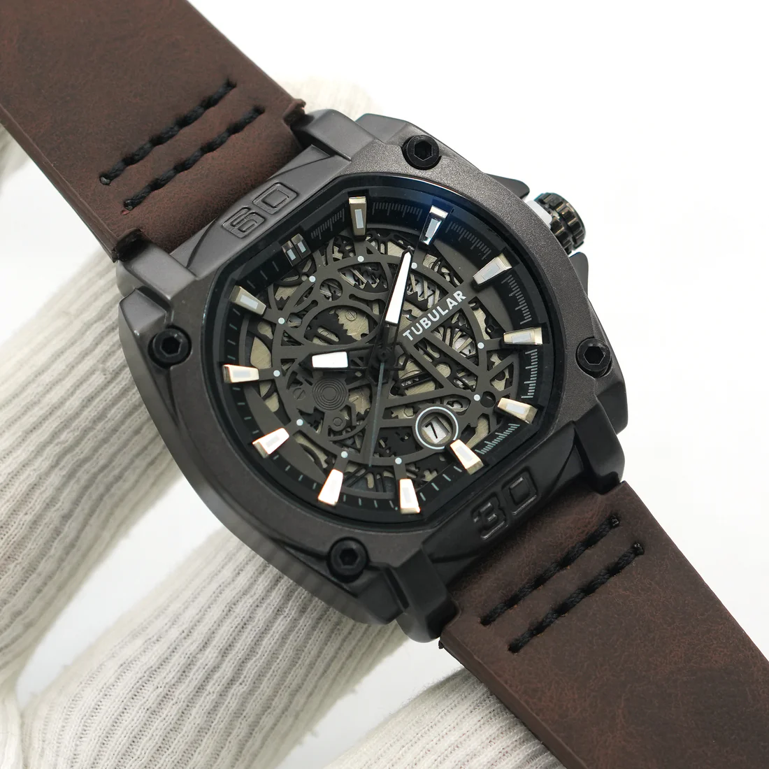 Orginal TUBULAR Black Leather Belt Watch For Men