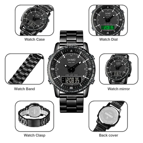 SKEIME 1816 Dual Time Show Watch For Men – Full Black